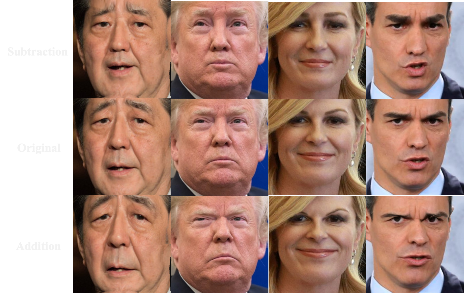 オリジナル画像に対して, 個人の顔特徴を減算すると、平均的な顔に近づく。